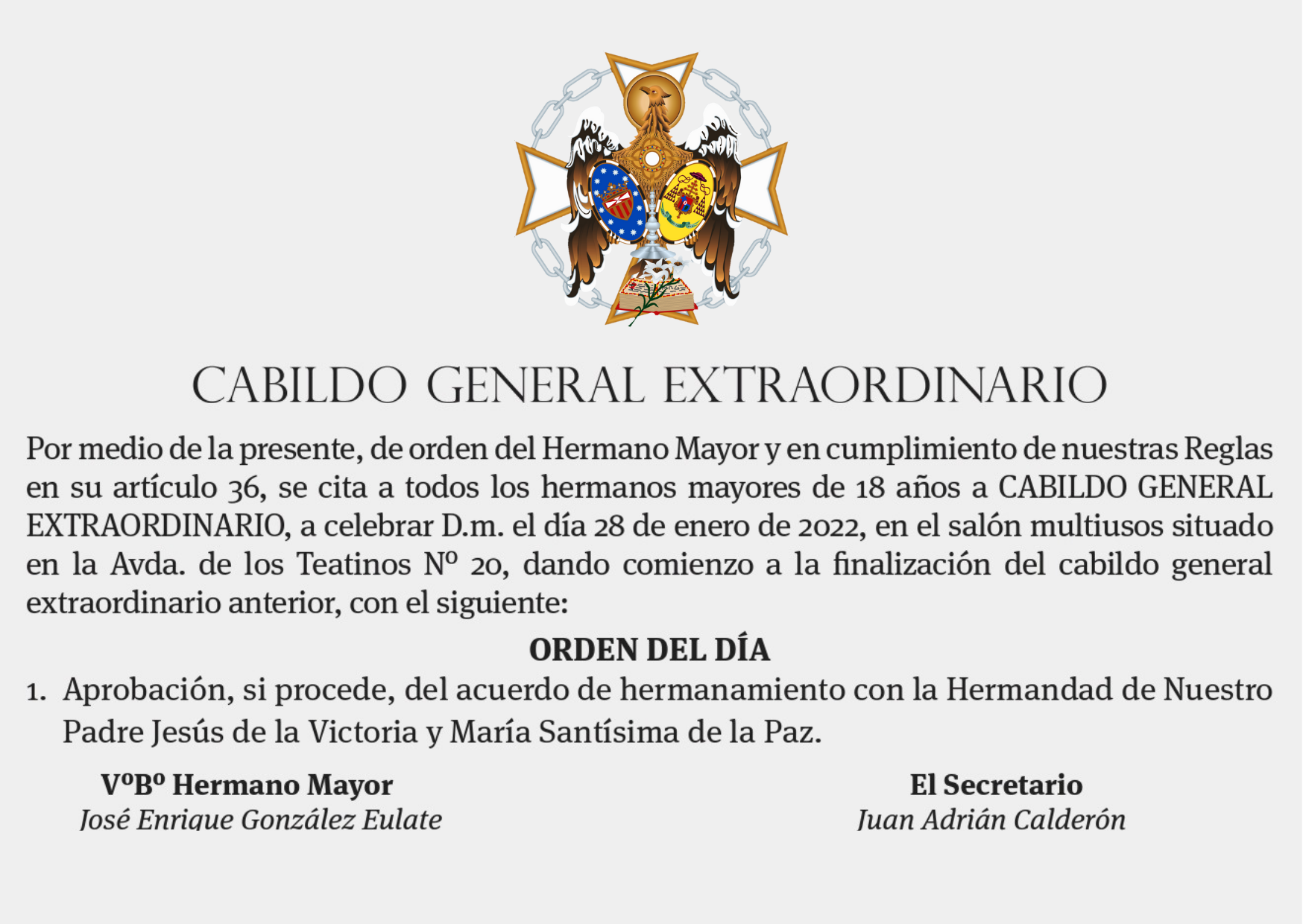 Al margen de la adhesión corporativa de nuestra Hermandad, solicitamos a todos nuestros hermanos, devotos y vecinos, la colaboración en la adhesión individual a esta petición.