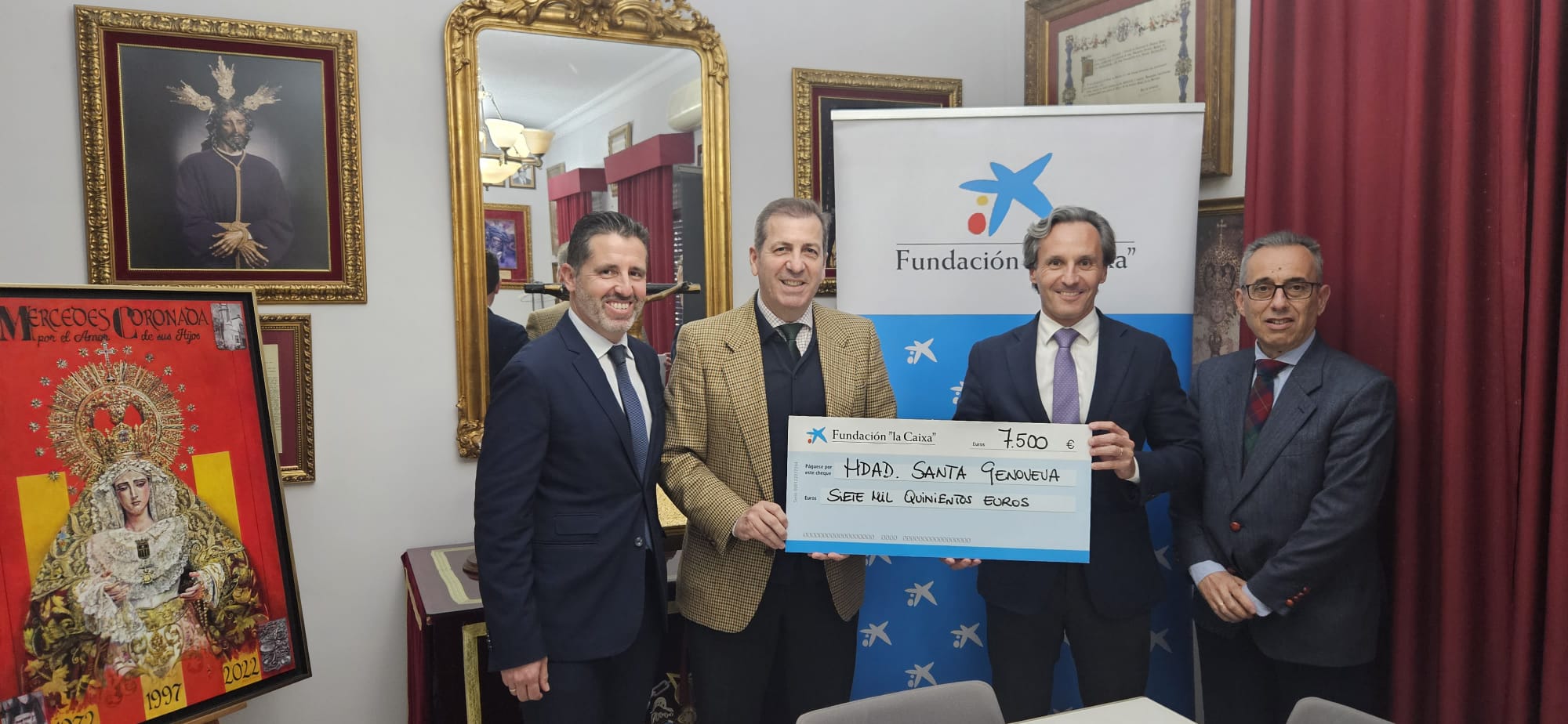 Por parte de la entidad financiera estuvo presente D. Daniel Pozo Acebes, Director del Área de Negocio de Sevilla Capital Centro y Sur, y Dª Ángel Montero Bernáldez, Director / Store Felipe II. Por parte de nuestra hermandad, el hermano mayor D.José Enrique González Eulate, el consiliario D. José Fco. Villa Bonmati y nuestro Mayordomo de Cuentas, D. Miguel Gutiérrez Sobrado.