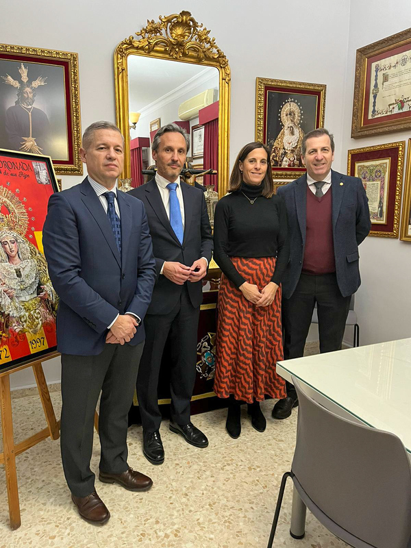 Por parte de la entidad financiera estuvo presente D. Daniel Pozo Acebes, Director del Área de Negocio de Sevilla Capital Centro y Sur, y Dª Mamen Martín Salinas, Responsable de Acción Social de Caixabank. Por parte de nuestra hermandad, el hermano mayor D.José Enrique González Eulate, el teniente de hermano mayor D. Manuel Román Naranjo, el consiliario D. José Fco. Villa Bonmati y la vocal de acción social Dª Ángela Rodríguez Benítez.