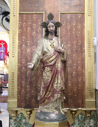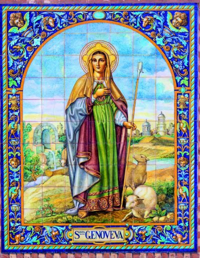 En la actualidad, Santa Genoveva se sitúa en la izquierda del Altar Mayor, junto a la entrada a la Sacristía y a las dependencias interiores, donde anteriormente se situaba la imagen del Sagrado Corazón que Jesús, bendecida en el año 1946, y que actualmente ocupa uno de los altares del lado derecho de nuestra Parroquia.