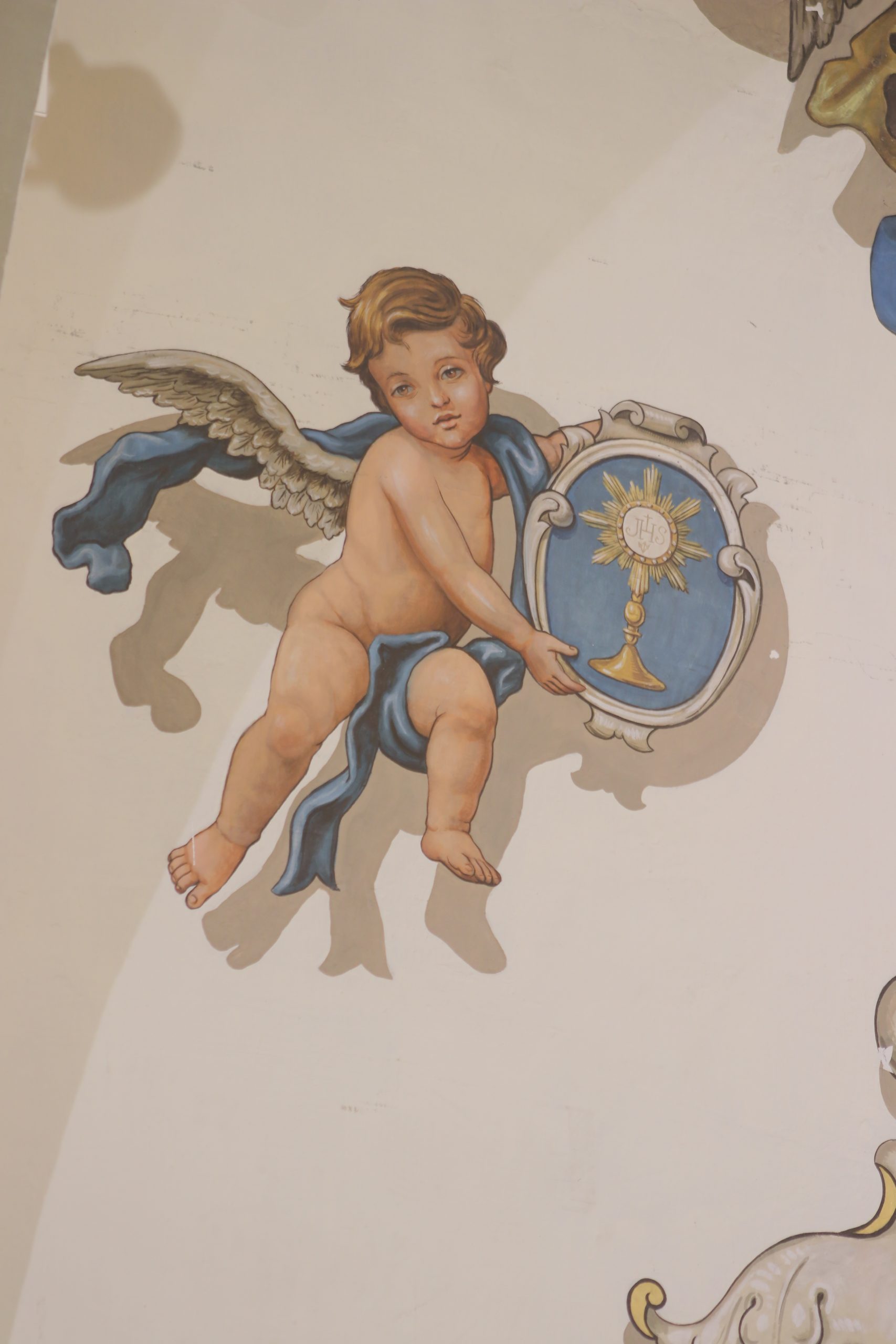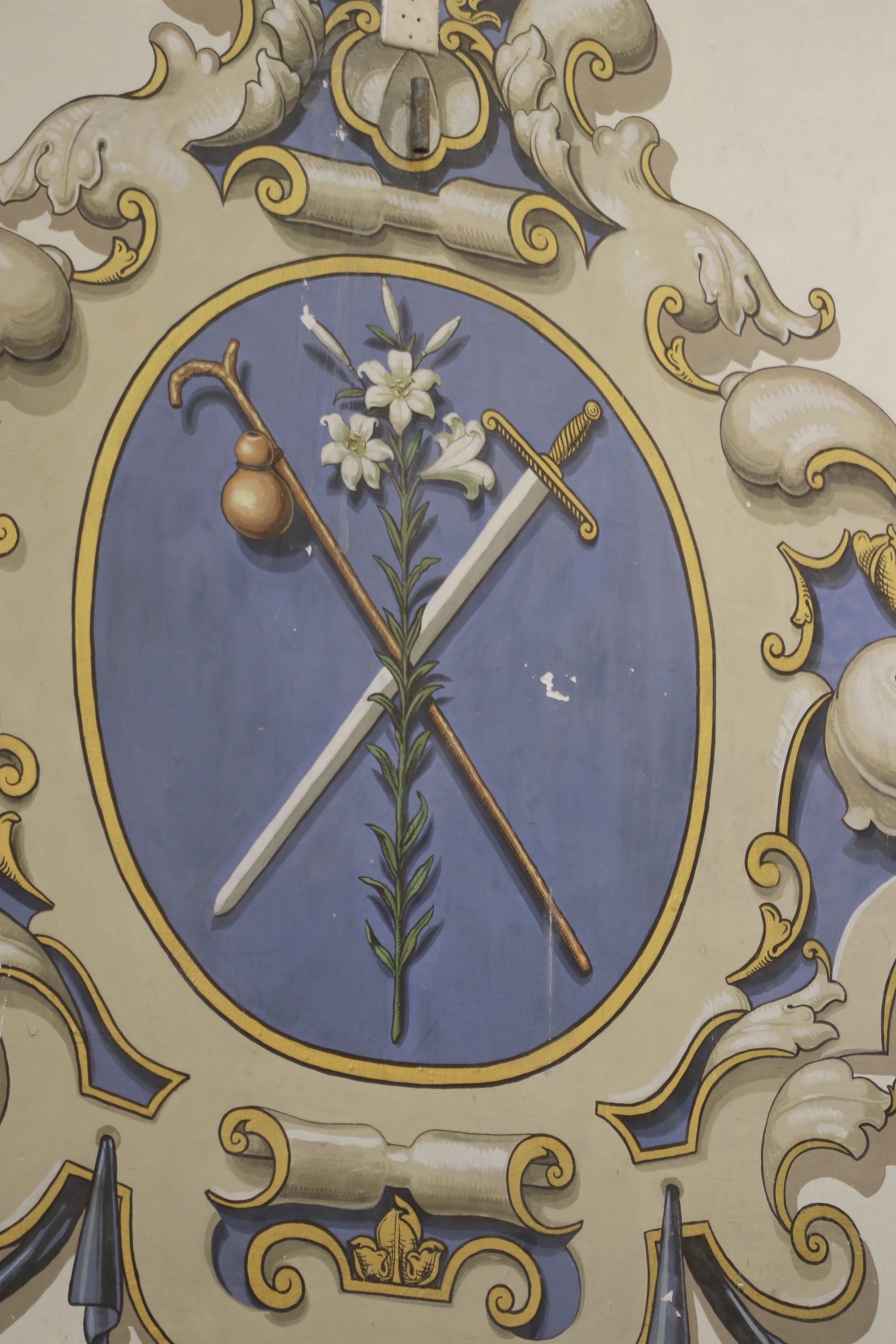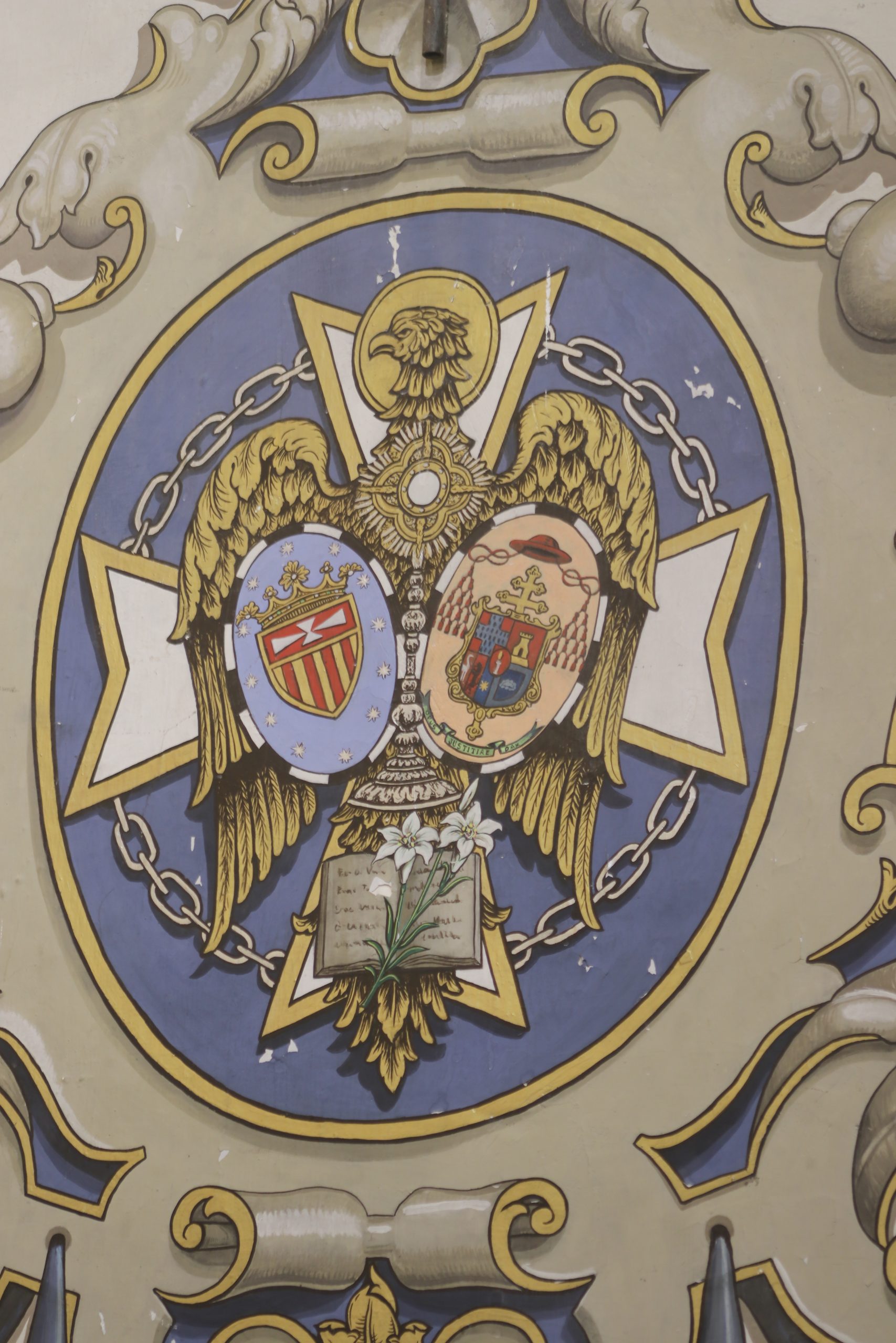 Todas estas pinturas, excepto las de los altares del Presbiterio, son obras a finales de los años setenta de D. Rafael Rodríguez, el mismo que realizó las del interior de la Basílica de la Macarena, habiéndose restauradas en los últimos años, coincidiendo con la reforma y mejora de las techumbres de la propia Parroquia.