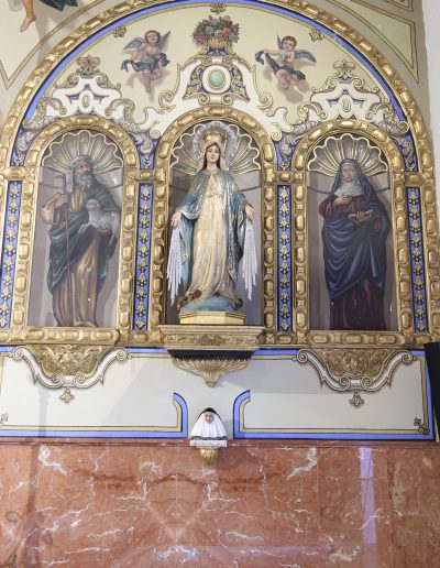 A la derecha del altar mayor, se encuentra el Altar de la Milagrosa, en cuyo centro se venera la imagen de la Inmaculada Milagrosa, de amplia devoción en el barrio, que pertenecía inicialmente a la Hermandad de gloria del Santísimo Sacramento y Nuestra Señora Inmaculada Milagrosa. Se trata de una talla del siglo pasado, que procesionaba por la feligresía, y que por motivos de conservación ya no lo hace.