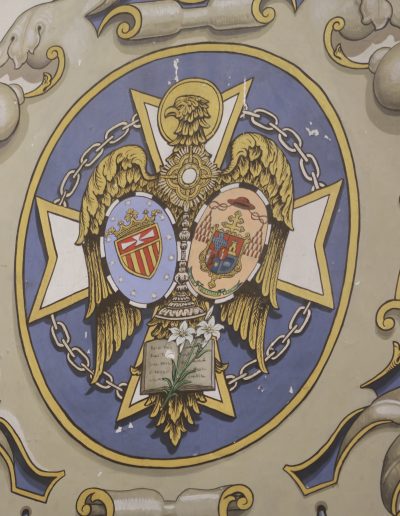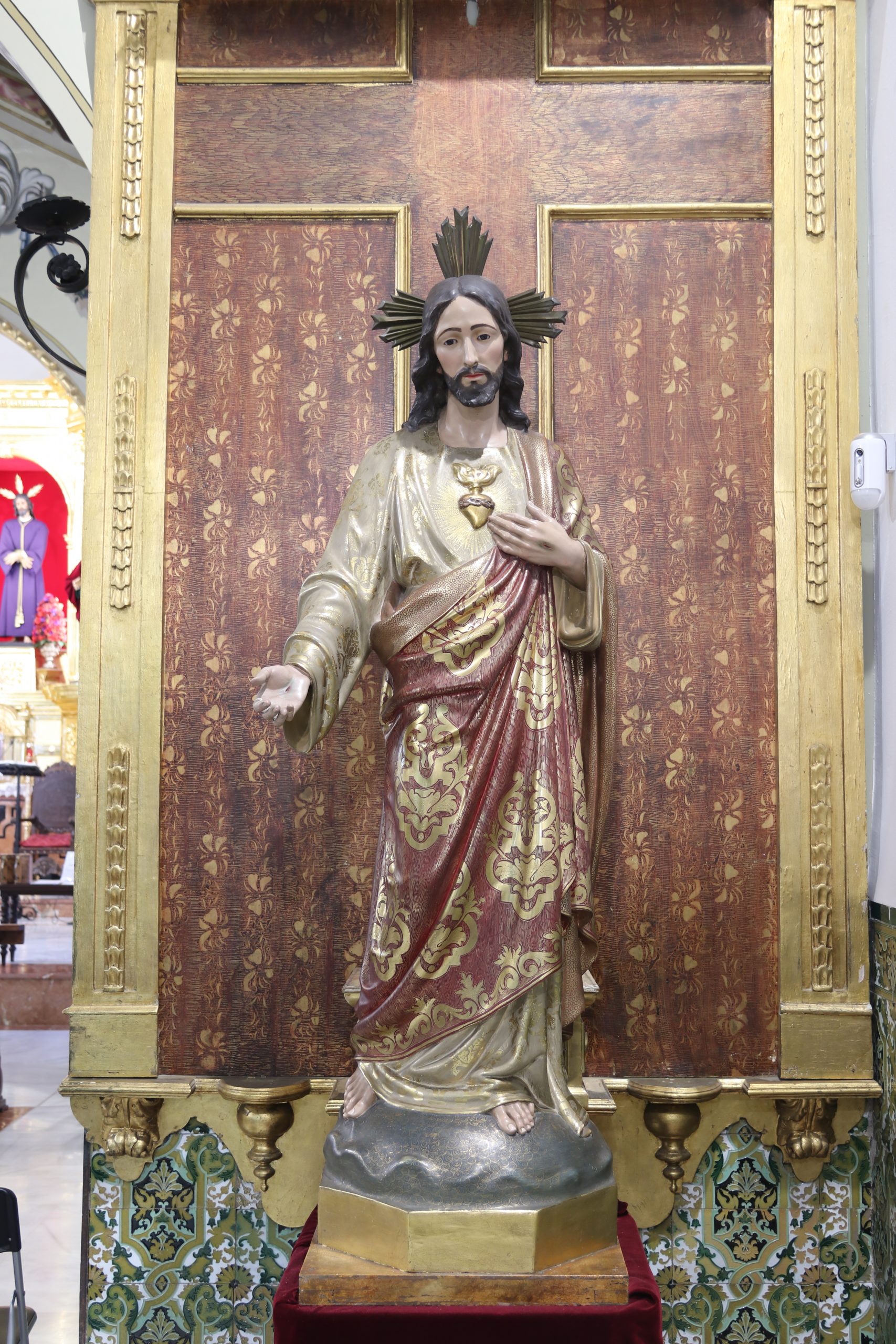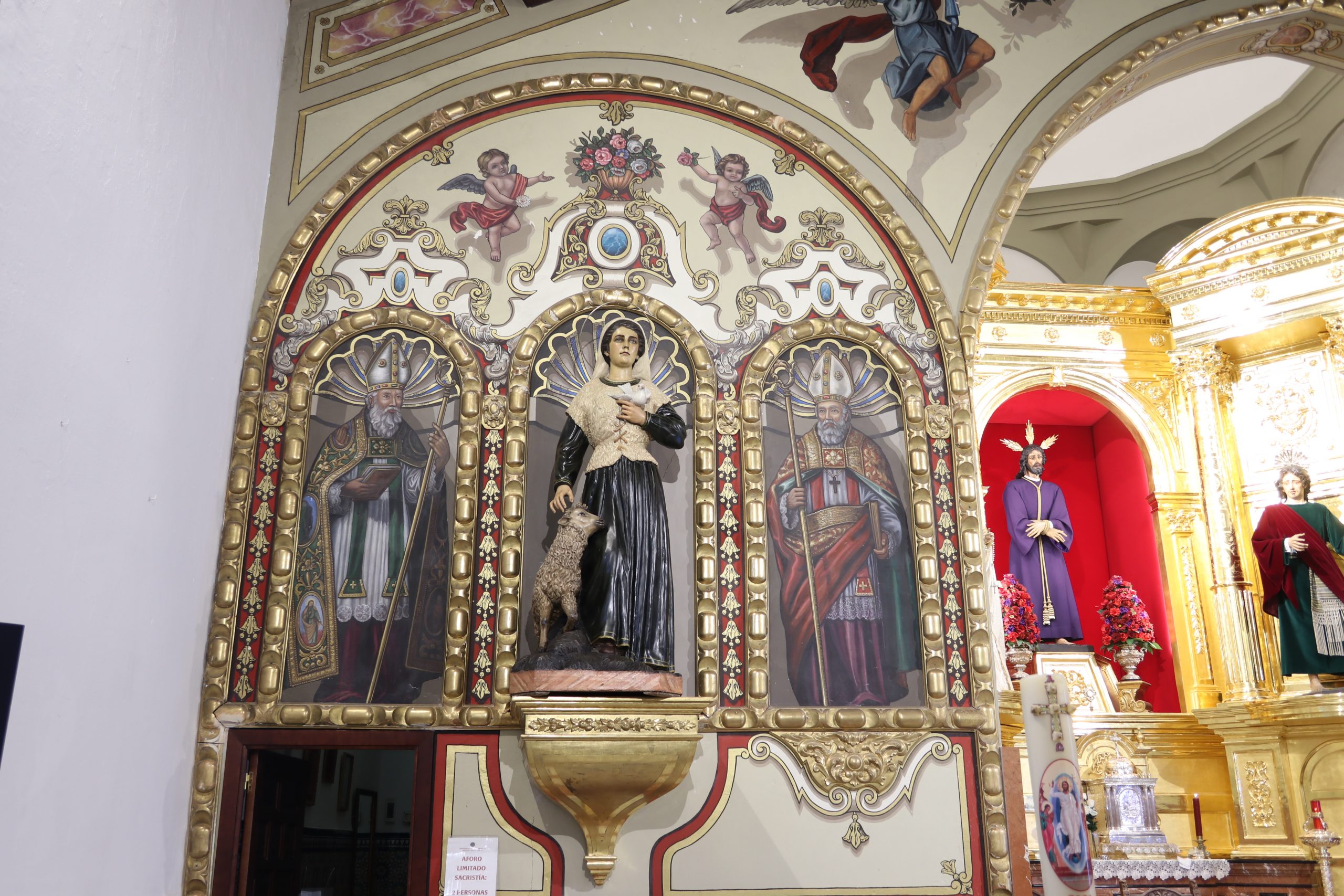 A la izquierda del altar mayor, junto a la entrada a la Sacristía y a las dependencias interiores