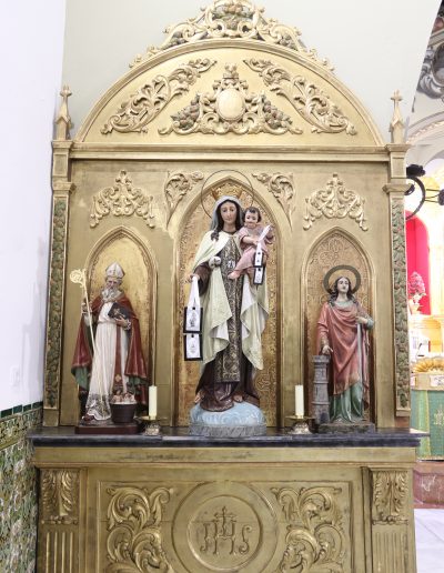 A lo largo de los diferentes altares laterales, podemos encontrar imágenes de diferentes Santos y advocaciones, como, por ejemplo, la Virgen del Carmen, San Antonio, San Martín de Porres, la Virgen de Fátima, Santa Bárbara o una pequeña escultura del Arcángel San Miguel. Son devociones que se asientan muy poco después de la construcción de la Iglesia, y reflejan las predilecciones del barrio hacia uno u otro santo.