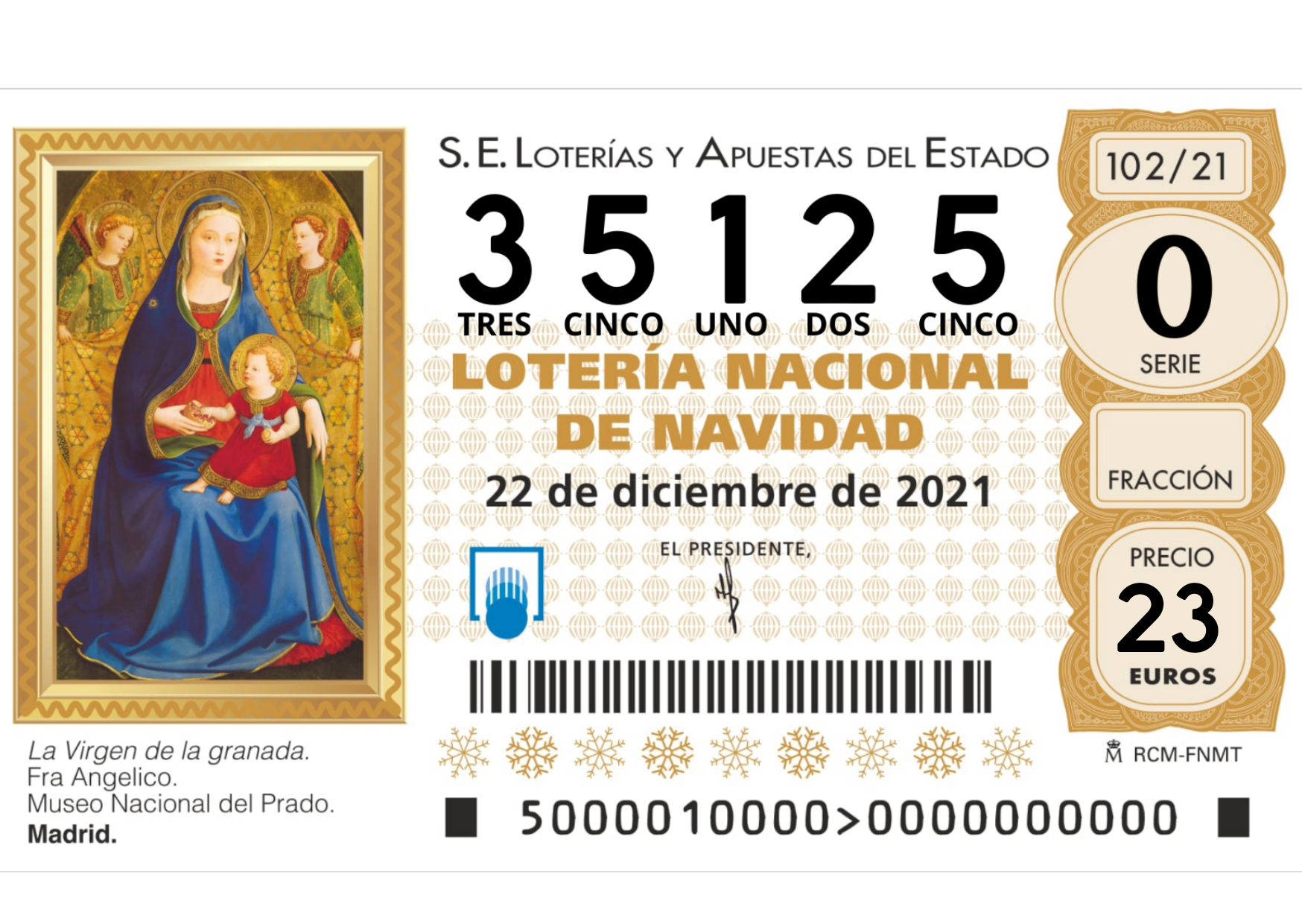 El número será el habitual, 35125, pudiéndose adquirir al precio de 23 euros (20 euros el décimo + 3 euros de donativo)